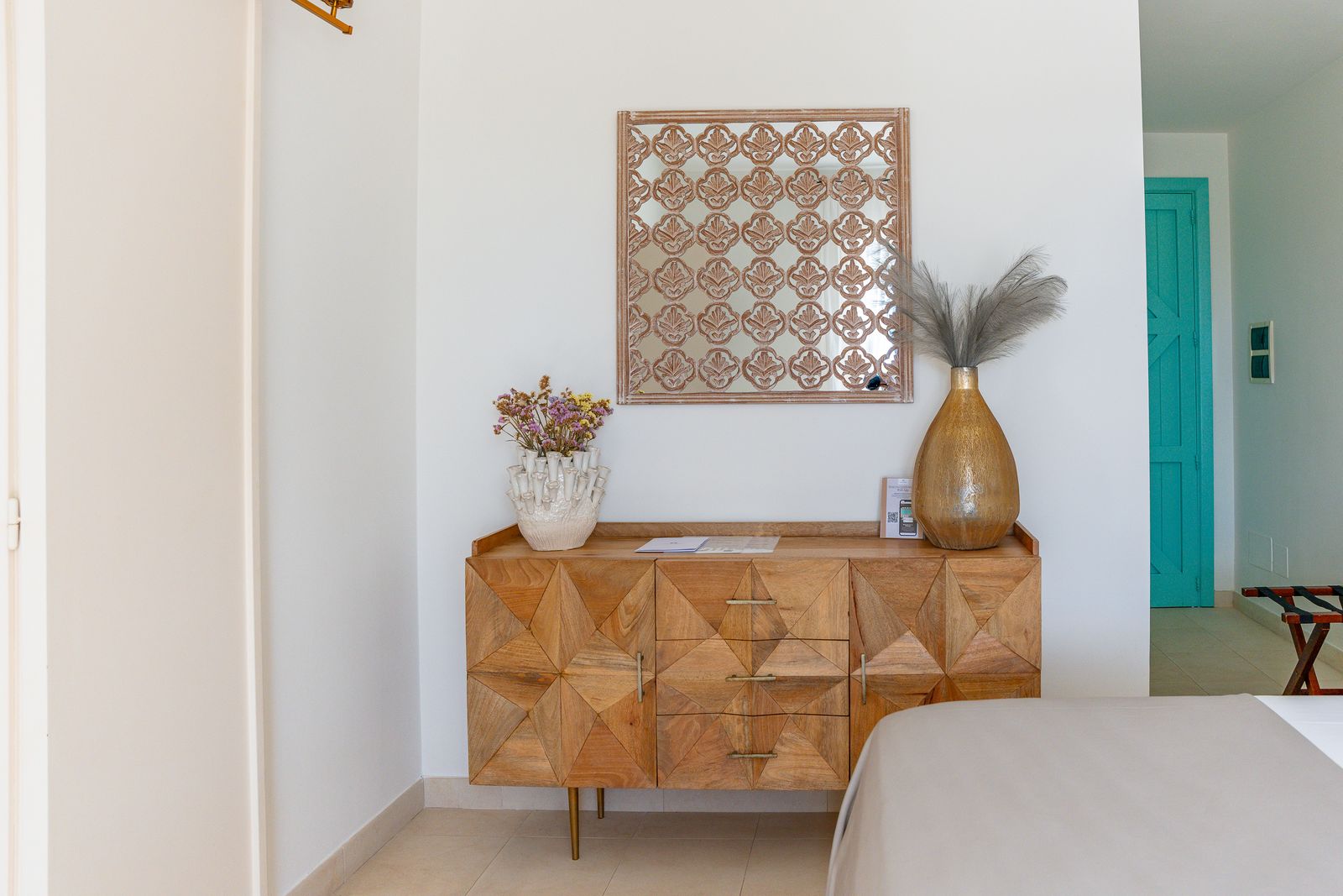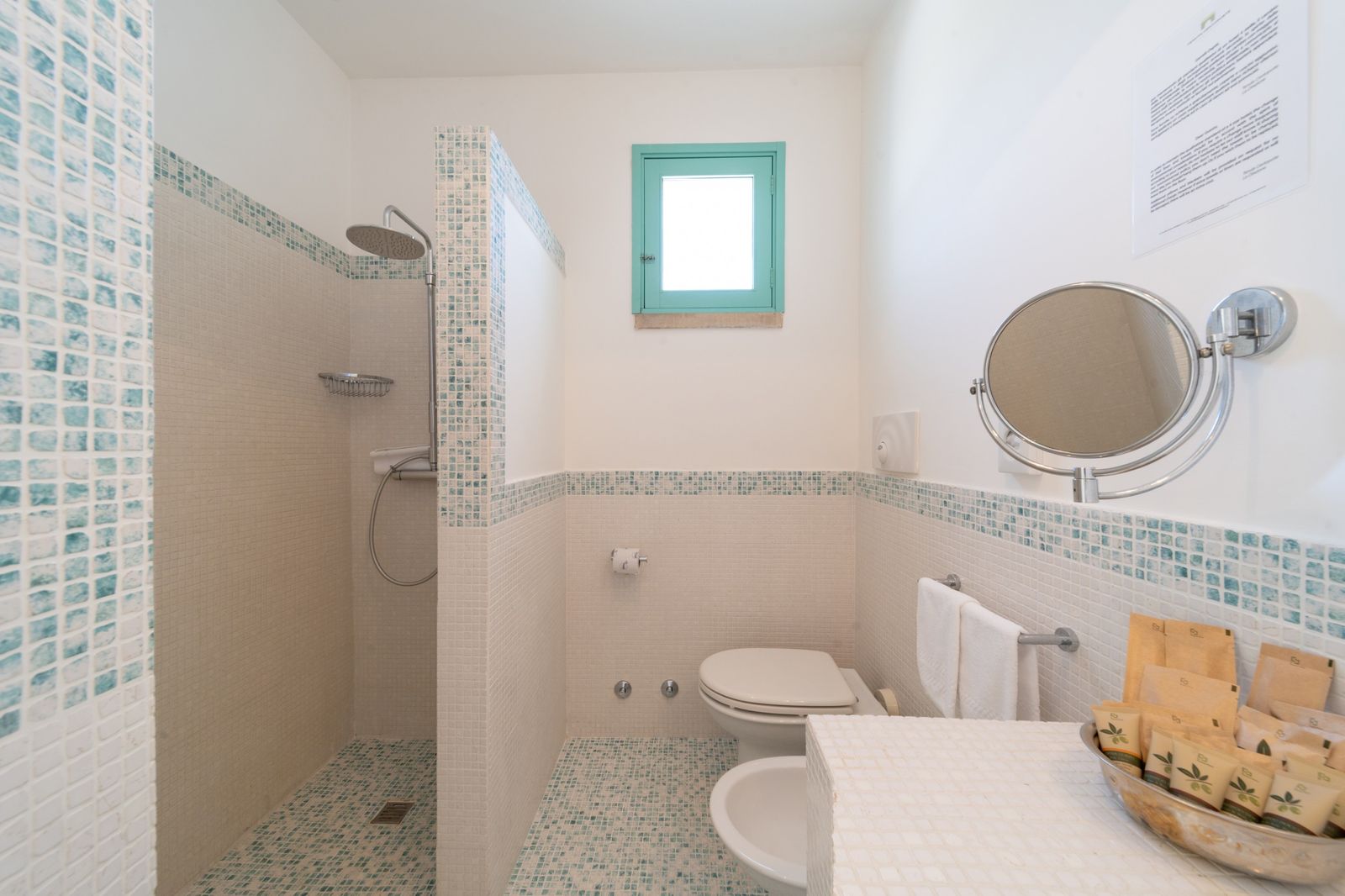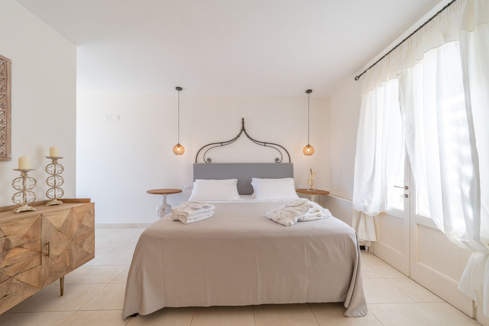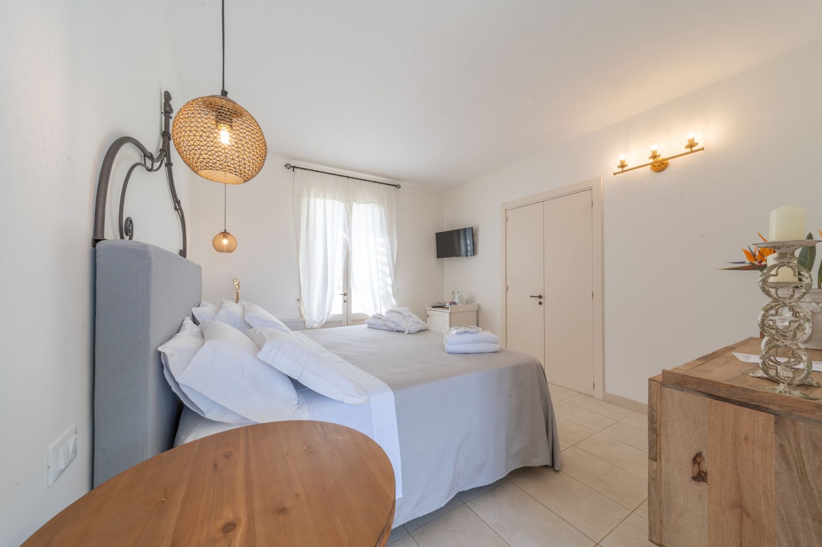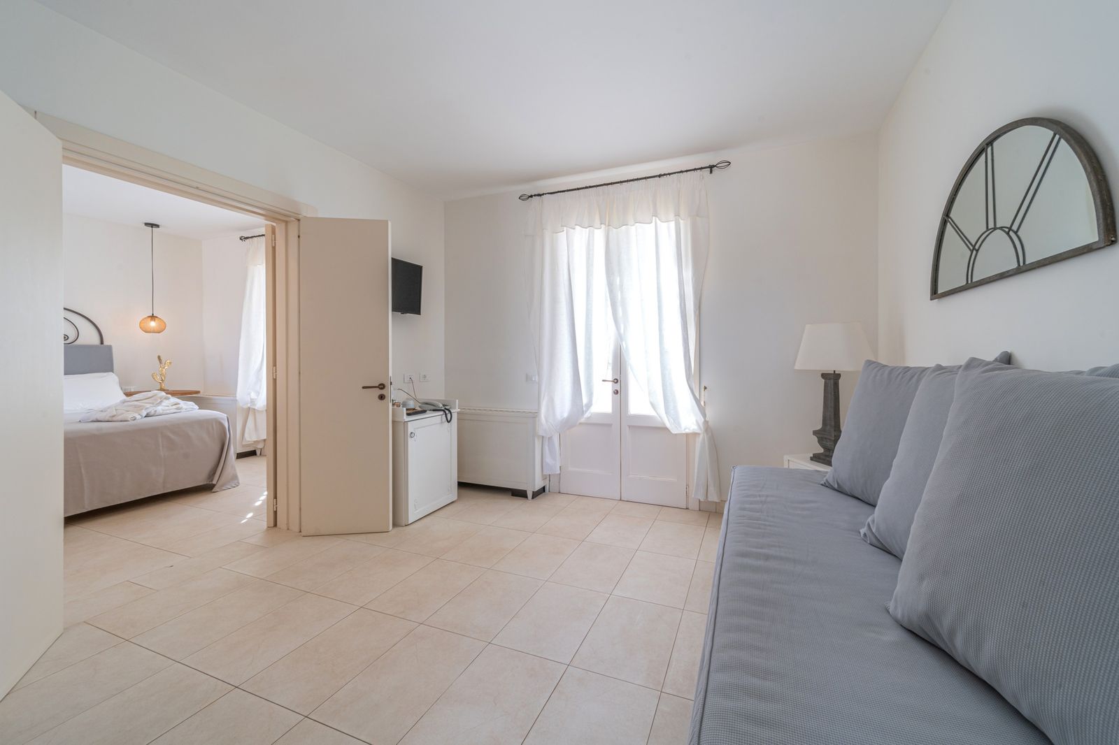 Refined and elegant suite, finely furnished and equipped with every comfort, consisting of two bedrooms, two bathrooms and a large balcony overlooking the garden. The private terrace, surrounded by greenery to guarantee your privacy, is equipped with loungers and an outdoor seating area where you can relax and enjoy the enchanting landscape. This suite is the ideal solution for families or groups of friends.